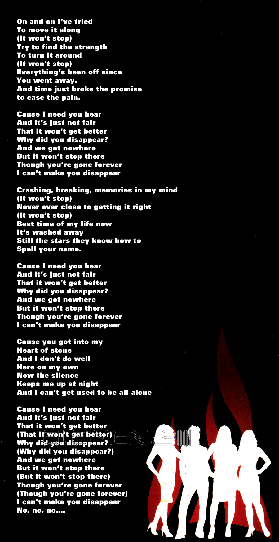 However, the producer and the writers of the “Disappear” song stated to NDR, that the melody of “Disappear” was already composed in January 2006 and with a little refinement the song was ready on November 2007. One expert said that the melody was too short to be considered plagiarism. The Universal Music continued that no one else had the demo of this song, before thr No Angels.